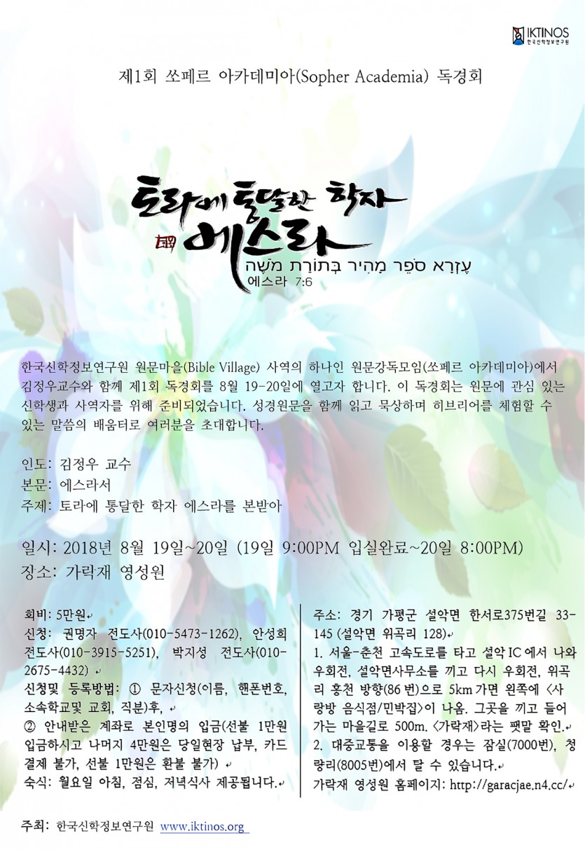 제 1회 쏘페르 아카데미아 독경회 안내 페이지 정보 작성자 최고관리자 작성일Date 14-07-17 00:00 본문 제 1회 쏘페르 아카데미아 독경회 안내 목록 이전글[ 북콘서트 ] 타카미추 무라오까 교수의 나의 비아 돌로로사 북콘서트 - 유선명 교수 서평 19.03.14 다음글색인초록 DB 제26차 정기간행물 25종, 3,536건을 업데이트했습니다. 14.07.04